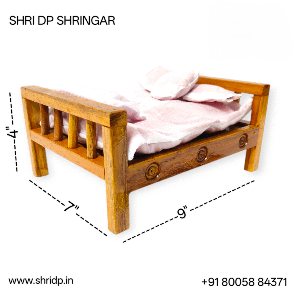 Gift your Laddu Gopal Ji, Thakor Ji, or Shrinath Ji the royal comfort they deserve with this divine wooden bed set, an embodiment of devotion and timeless craftsmanship.