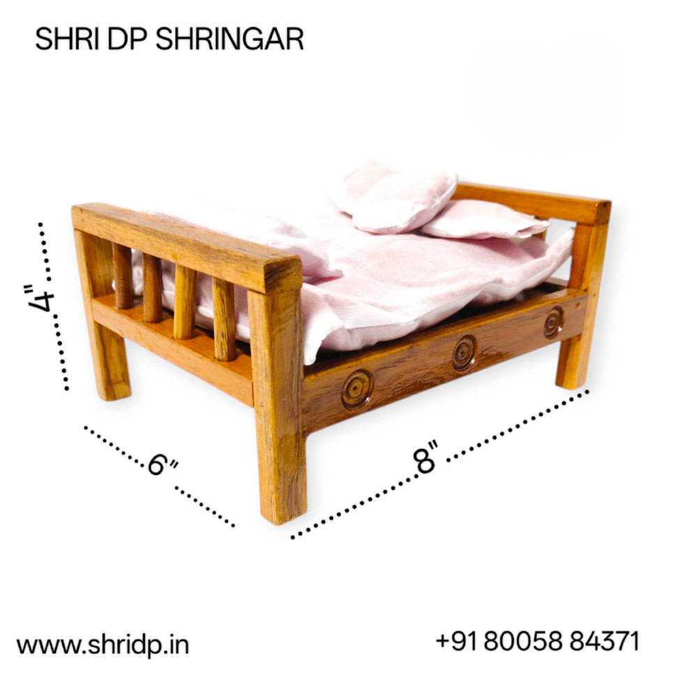 Indulge your beloved Laddu Gopal Ji, Thakor Ji, or Shrinath Ji with the ultimate resting experience through the Shri DP Sagwan Wooden Bed with Gaadi & Takia. Expertly handcrafted from high-quality Sagwan wood (Teak), this luxurious bed ensures both durability and elegance, making it an ideal addition to your divine space. The intricate craftsmanship is designed to enhance your Sayan Seva rituals, providing a sacred and peaceful sanctuary for your deity during rest.